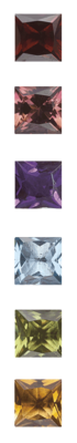 Roter Granat ca. 5,0 x 5,0 mm 0,90 Carat Rosa Turmalin ca. 5,0 x 5,0 mm 0,60 Carat Violetter Amethyst ca. 5,0 x 5,0 mm 0,58 Carat Blauer Topas ca. 5,0 x 5,0 mm 0,75 Carat Grüner Peridot ca. 5,0 x 5,0 mm 0,78 Carat