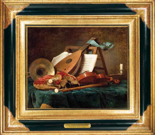 Die im Licht aufschimmernden Instrumente, die hier abgelegt und verklungen sind, wiederholen den Gedanken der Schönheit und Vergänglichkeit, der Liebe und der Sinnesempfindung. Anne Vallayer-Coster, geboren im Jahr 1744 in Paris als Tochter eines Goldschmieds und einer Miniaturmalerin, gehörte zu den angesehensten Stillleben-Malerinnen der französischen Schule.